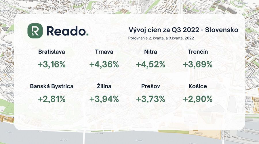 Realitný trh, vývoj cien nehnuteľností a celkovo situácia zaujíma množstvo ľudí a je čoraz náročnejšie byť v danej problematike zorientovaný. Ceny sa rýchlo menia a situácia zďaleka nie je ideálna. Pre lepšie pochopenie realitného trhu, pre zistenie cien nehnuteľností v lokalite, v ktorej bývate, poznanie cien za meter štvorcový, priemernej dĺžky predaja, či priemernej výšky mesačného nájmu je tu prvá realitná cenová mapu od Reado. Mapuje územie Slovenska i Českej republiky a zoskupuje všetky dôležité informácie týkajúce sa realitného trhu.