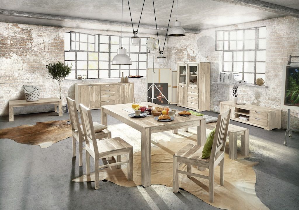 Textúrované drevo prináša teplo a domácu atmosféru, zatiaľ čo industriálne prvky, ako sú napríklad kovové svietidlá do kuchyne alebo odkryté tehly, dodávajú priestoru surový a moderný vzhľad. Kovové svietidlá, ako aj moderné nahé žiarovky či sklenené tienidlá odhaľujúce svetelný zdroj, dodávajú priestoru jedinečný charakter a dotyk mestského štýlu. Hodia sa ako osvetlenie nad jedálenský stôl alebo ostrovček.