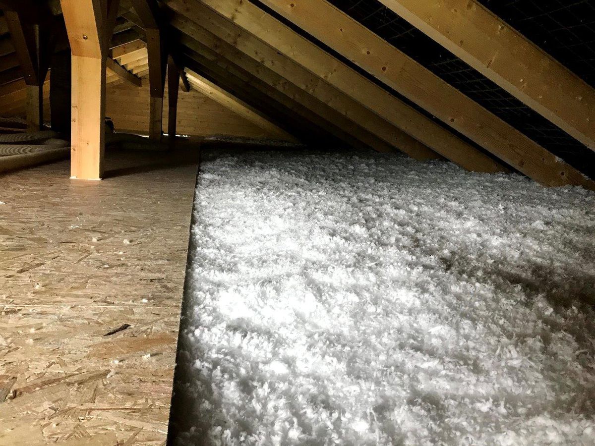 Ak si zvolíte fúkanú izoláciu, spomínané trámové stropy a dvojplášťové ploché, pultové strechy je možné izoláciou vyplniť do dutiny. Pri fúkaní do dutiny sa aplikuje izolácia väčším tlakom, steny dutiny umožnia viac ju „natlačiť“. Pri fúkaní voľne na plochu nie sú potrebné žiadne stavebné úpravy, no ak na povale chcete niečo skladovať, treba na to vybudovať servisné lavičky alebo úložné plochy z drevených dosiek, v určitých prípadoch aj z OSB dosiek. Pri oboch spôsoboch je veľkou výhodou, keď sa izolácia časom nedeformuje, „nesadá“, čo treba zohľadniť pri výbere materiálu. Na trhu sa na fúkané izolácie používajú hlavne celulóza a minerálna izolácia. Ak vám záleží na prírodnom materiáli, celulóza je síce vyrobená z recyklovaného papiera, no treba zvážiť fakt, že sú v nej pridávané retardéry horenia a iné chemické látky, napríklad kyselina boritá, borax alebo amónne soli.