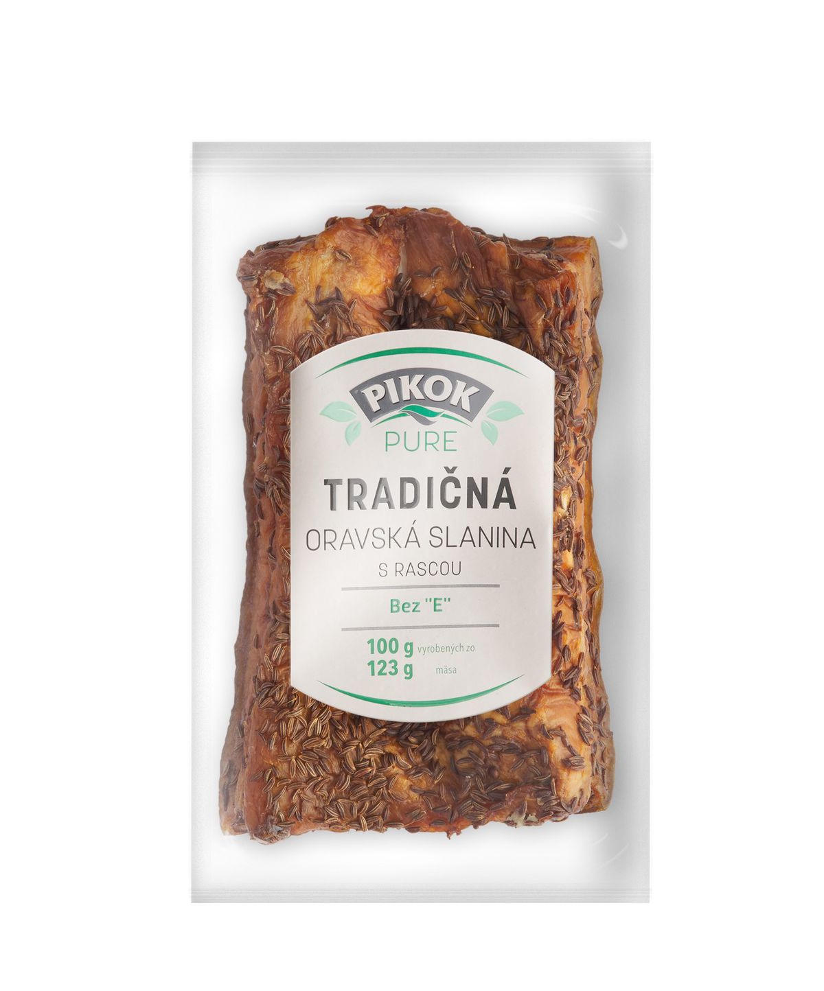 V prípade Pikok Pure Tradičnej oravskej slaniny ide o poctivý slovenský výrobok s chuťou domácich špecialít. Mäsiarski majstri pripravili 100 gramov tejto slaniny až zo 123 gramov mäsa. Okrem vysokého podielu mäsa sa pýši aj čistým zložením radu Pure.