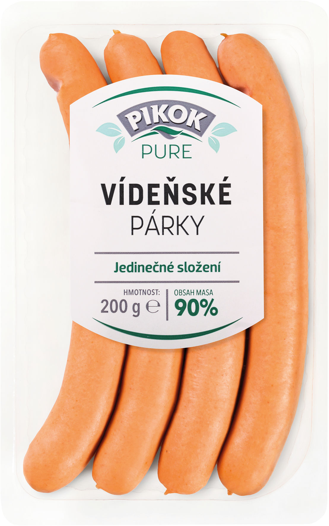 Pikok Pure Viedenské párky sa vyznačujú 90% obsahom bravčového mäsa a zložením bez zbytočných prísad. Sú plnené do prírodného baranieho črievka, ktoré zabezpečí to správne chrumknutie. Jemné zaúdenie na pravom bukovom dreve im dodáva autentickú chuť, presne tak, ako to má byť.