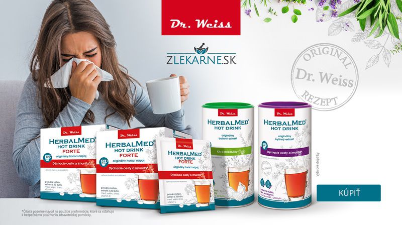 Výživové doplnky Herbalmed HOT DRINK Dr.Weiss obsahujú kombináciu 20 šetrných a hlavne účinných rastlinných extraktov vhodných aj pre tehotné a dojčiace ženy a deti od 3 rokov. Na uvoľnenie dýchacích ciest a podporu imunity zvoľte hot drink s obsahom eukalyptu, lipy a materinej dúšky. Pre ľahšie vykašliavanie a normálnu funkciu priedušiek zase dajte prednosť horúcemu nápoju s obsahom skorocelu, tymiánu a ďalších byliniek. Hot drinky je možné navyše užívať spoločne s antibiotikami a liekmi s obsahom paracetamolu a ibuprofénu.