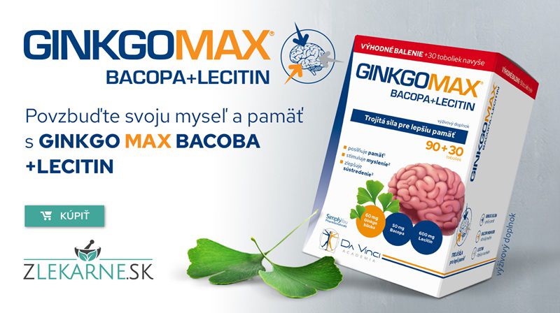 Ak na sebe dlhodobo pozorujete problémy s pamäťou, vyskúšajte vyhľadávaného pomocníka – GinkgoMax+Bacopa+Lecitín. Tento výživový doplnok je unikátny svojím zložením s obsahom extraktu Ginko biloby, ktorý prekrvuje a vyživuje mozgové tkanivá a posilňuje pamäť. Vďaka obsahu lecitínu podporuje regeneráciu nervových buniek a pomáha zlepšovať sústredenie. Bacopa zas pomáha stimulovať myslenie. Tieto látky pôsobia synergicky a oveľa účinnejšie, než keby pôsobili oddelene, čím sa zvyšuje účinnosť tohto výživového doplnku.