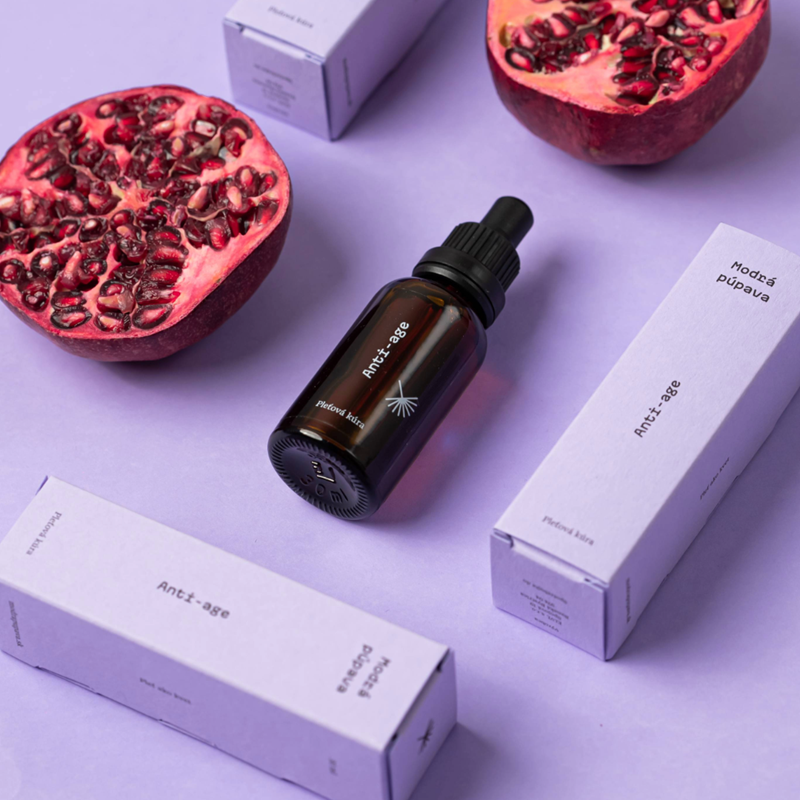 Čisto bylinný elixír “Anti-age” poskytuje intenzívnu starostlivosť s omladzujúcimi, rozjasňujúcimi a regeneračnými účinkami. Formulovaný s olejmi lisovanými za studena, ako sú mandľový, makadamový a granátové jablko, je obohatený o antioxidanty, ako je kyselina hyalurónová, astaxantín a vitamín E pre silné účinky proti starnutiu. Bylinné výťažky, ako je rakytník, goji a sladký slad, zvyšujú produkciu kolagénu a pomáhajú redukovať vrásky, pigmentové škvrny a ochabnutie. Toto ošetrenie, ideálne pre zrelú, matnú a nerovnomernú pleť, obnovuje mladistvý, žiarivý vzhľad a ako názov sám prezrádza, zabojuje s rokmi.
