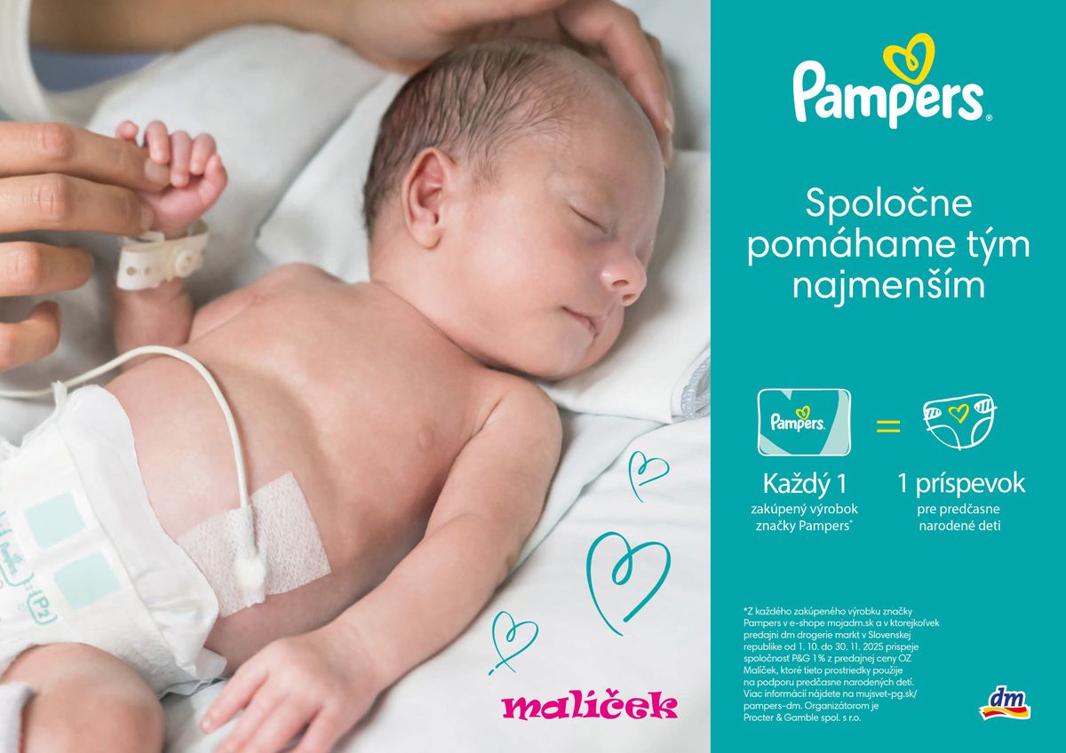 Do konca novembra 2025 sa k pomoci môžete pridať aj vy. Z každého zakúpeného výrobku značky Pampers v predajniach dm drogerie markt na Slovensku alebo e-shope mojadm.sk venuje značka Pampers finančný príspevok pre občianske združenie malíček, ktoré tieto prostriedky použije na podporu predčasne narodených detí. Ďalšie informácie nájdete na Pampers.cz/preemies.
